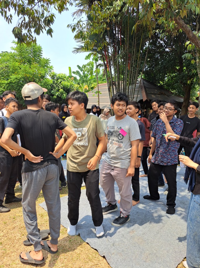 Setelah sesi motivasi, dilanjutkan dengan sesi permainan. Pertama adalah permainan “Whisper Games”, di mana siswa berlatih berbicara dan mendengarkan kalimat yang disampaikan oleh teman mereka, dan orang terakhir harus menuliskan kalimat tersebut.