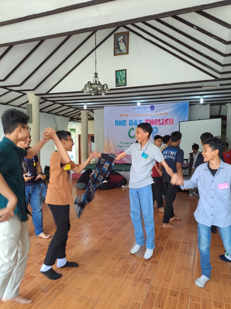 Tangerang Selatan, 16 September 2023 – Abak Academy bekerja sama dengan MTsN 1 Tangerang Selatan telah sukses menyelenggarakan kegiatan One Day English Camp. Acara ini bertujuan untuk memberikan pengalaman belajar yang menarik dan meningkatkan keterampilan berbahasa Inggris bagi para siswa. Acara dimulai dengan Opening Ceremony yang dipandu oleh master of ceremony, yaitu Ka Aida dan Ka Bagas. Dilanjutkan dengan sambutan dari Wakil Kurikulum MTsN 1 Tangerang Selatan, Ibu Eka Munawaroh, M.Ed.